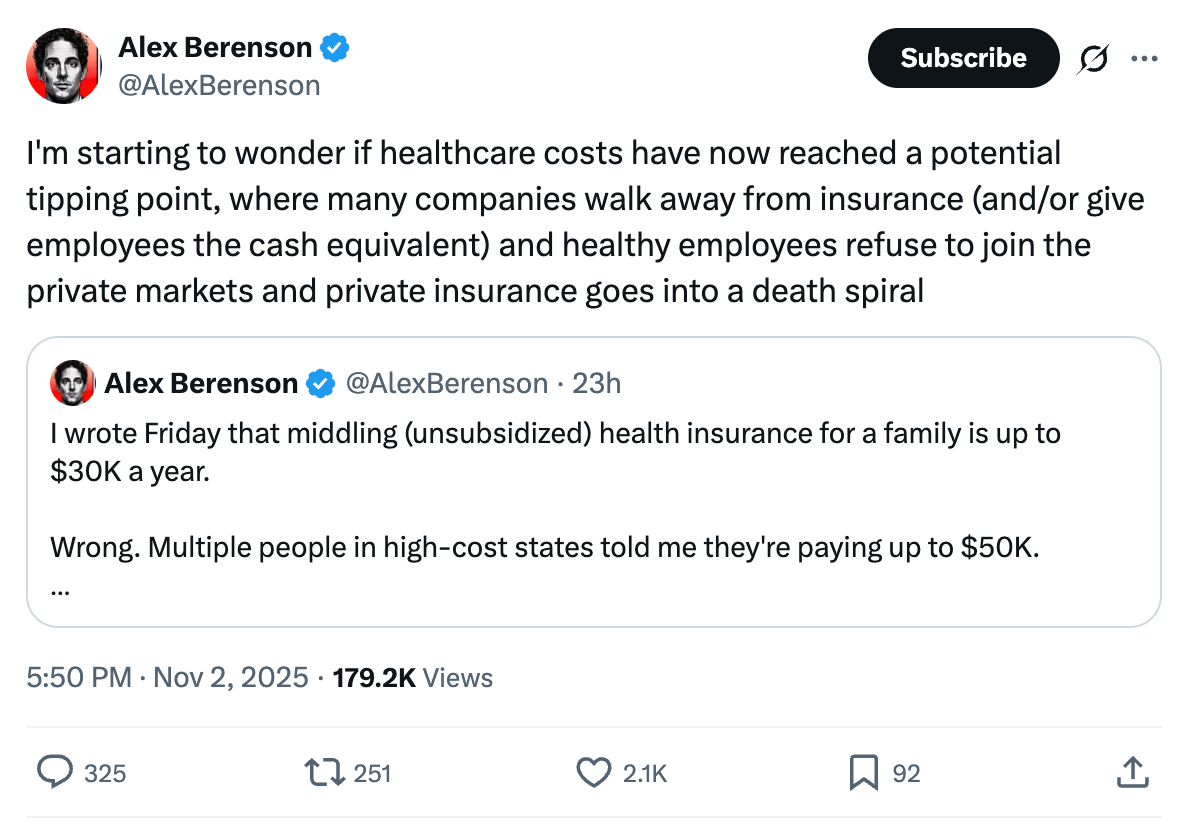 $50,000 a year for premiums is too much. The median family income is just above $100,000, meaning they’d spend half of their income just to have health insurance.